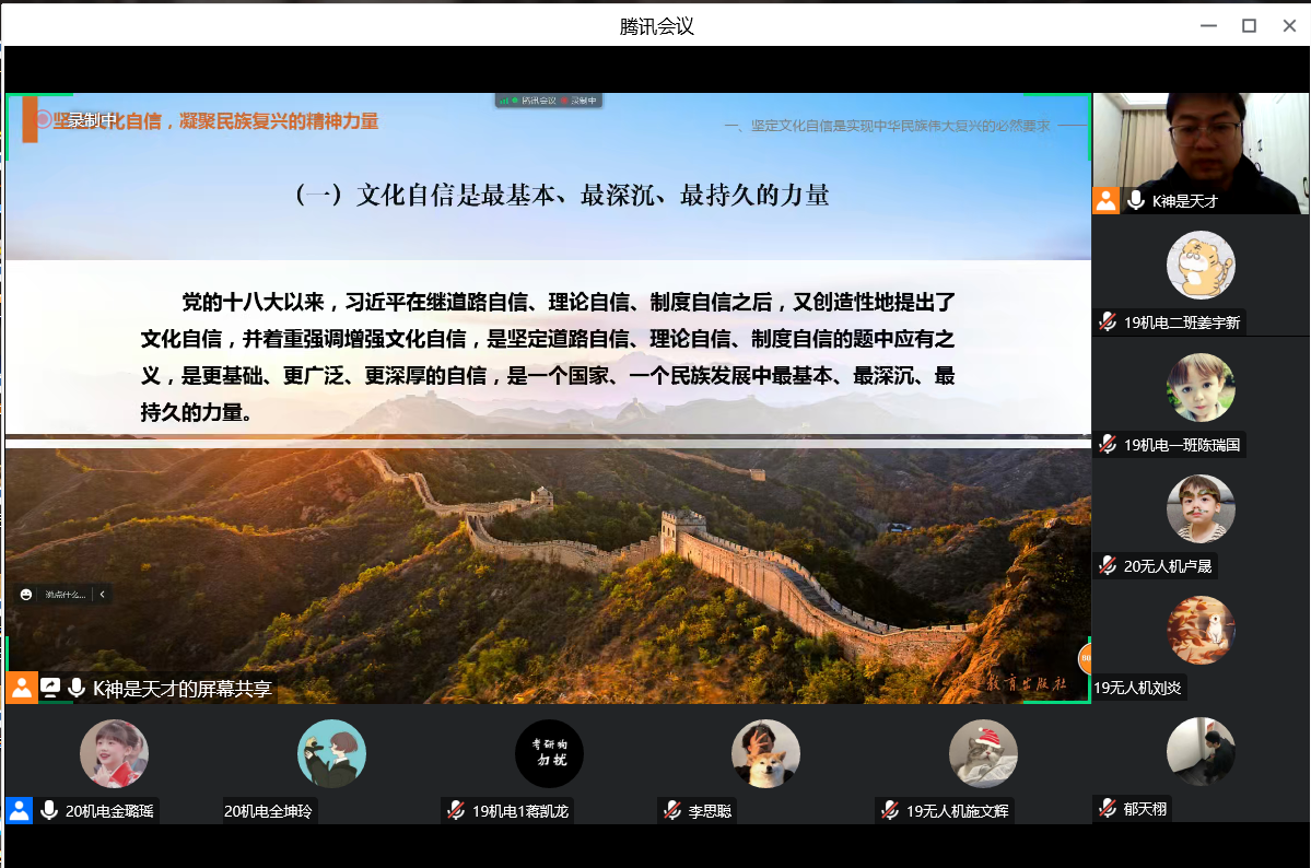2022年12月15日晚,MK体育员工第二党支部全体党员通过线上腾讯会议上党课,本次党课由员工第二党支部书记钟理韬主讲,本次党课的主题是“坚定文化自信,凝聚民族复兴的精神力量”。