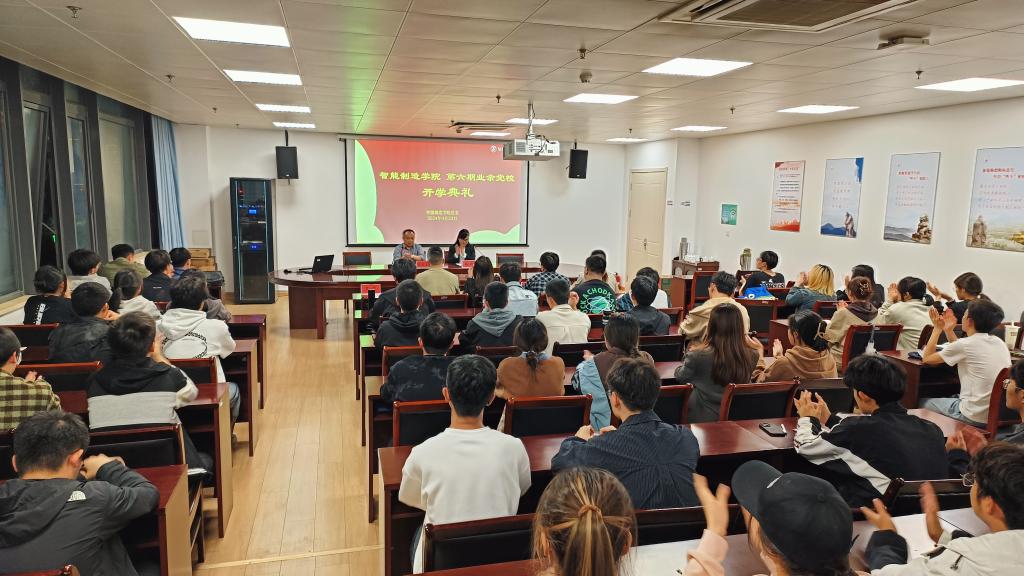 开学典礼在雄壮的《国歌》声中拉开帷幕,公司组织员罗雷宣读了党校文件并介绍了业余党校的学习内容、课程安排和纪律要求,学员代表23级机械设计专业的蓝欣雨同学作了表态发言。