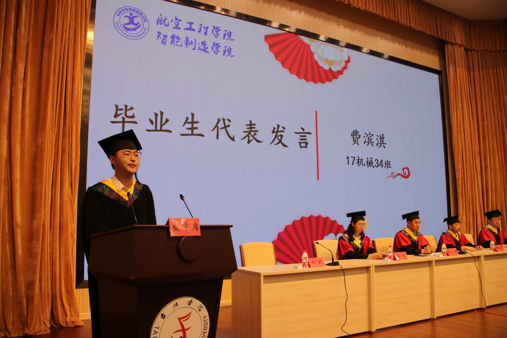 教师代表王立标老师表达浓浓的师生情并祝福毕业生的深情寄语,毕业生代表费滨淇发言表达了对母校四年的感激之情,在校生代表梁煜欣为毕业班送上最诚挚的祝福。