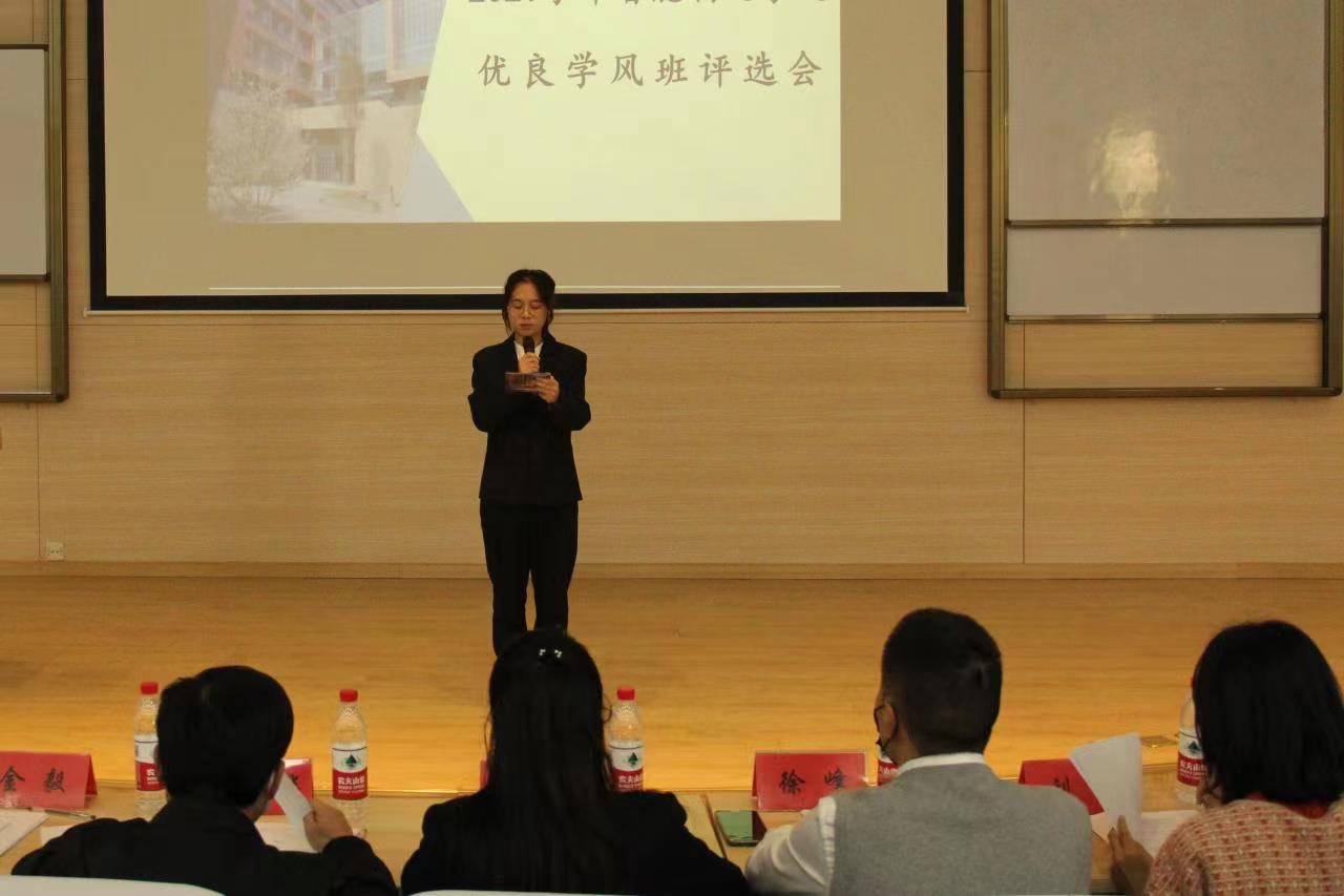 评选会上,各班代表通过班级介绍、学风建设目标、学习成就、未来展望等方面内容,以详实的数据,精彩的演讲,逐一展示了班级在学风建设上的创新举措以及工作亮点,充分展现了班集体团结友爱、积极向上、奋发进取的精神风貌。