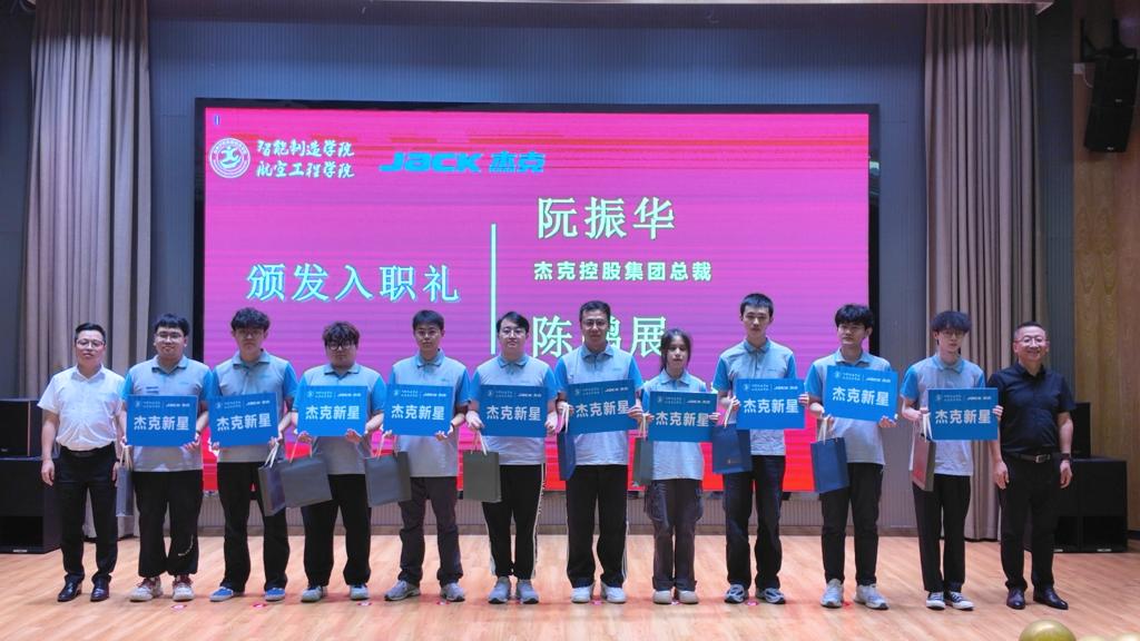本次活动围绕“智启未来·筑梦行远”主题,先后颁发“杰克班”奖学金、“十佳孝善学子”奖学金、“缝暖学途”助学金,表彰“杰克科创之星”“杰克新星”,与会领导嘉宾为获奖员工颁奖并合影。2025届入职杰克毕业生代表周书宇分享成长感悟,真挚地感谢母校与企业培育,祝愿毕业生们用智慧和汗水,共同书写精彩未来。串场节目《Shake it》街舞表演点燃现场活力,抽奖环节送出多份大礼包。