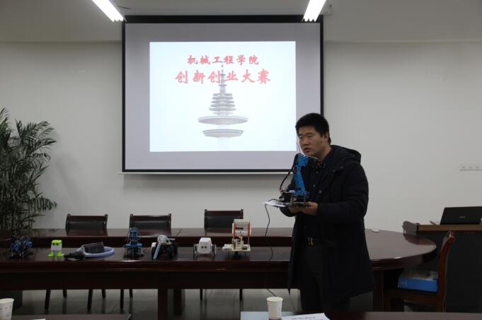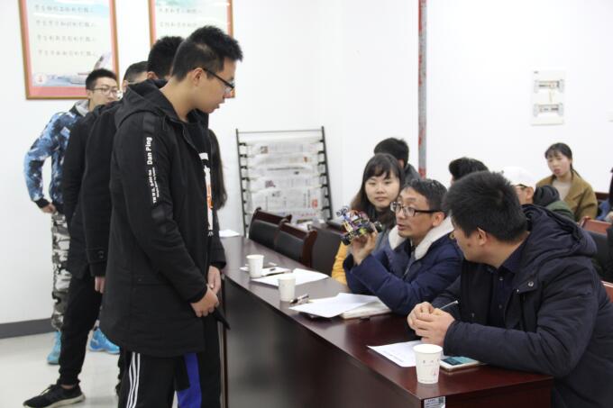 1月5日,由机械公司主办,机器人协会承办的机械创新创业大赛在B号楼201会议室举行。公司专业社团指导教师范剑、金飞翔、秦利明及辅导员应邀出席并担任评委,专业社团成员及部分员工代表参加。