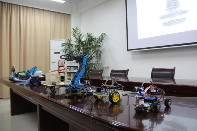 本次比赛共历时一个月,经过初赛、复赛筛选,最总共16组选手进入决赛。第一部分成果展示环节,各组选手利用PPT、视频、现场操作等方式,自信从容地展示了参赛作品的制作过程和各项性能指标,赢得了观众的阵阵掌声。在随后的现场问答环节,评为就作品的制作、调试、编程、仿真等方面进行提问,并对症下药的提出了完善建议。最终,由朱增添、费滨淇、郭龙、黄传豪同学的“多功能画图教具”作品,荣获一等奖;“电动筛子”、“除粉板擦”、“遥控清扫机器人”三组参赛作品获二等奖;“智能小车”、“otto机器人”、“多功能机械手”获得三等奖。