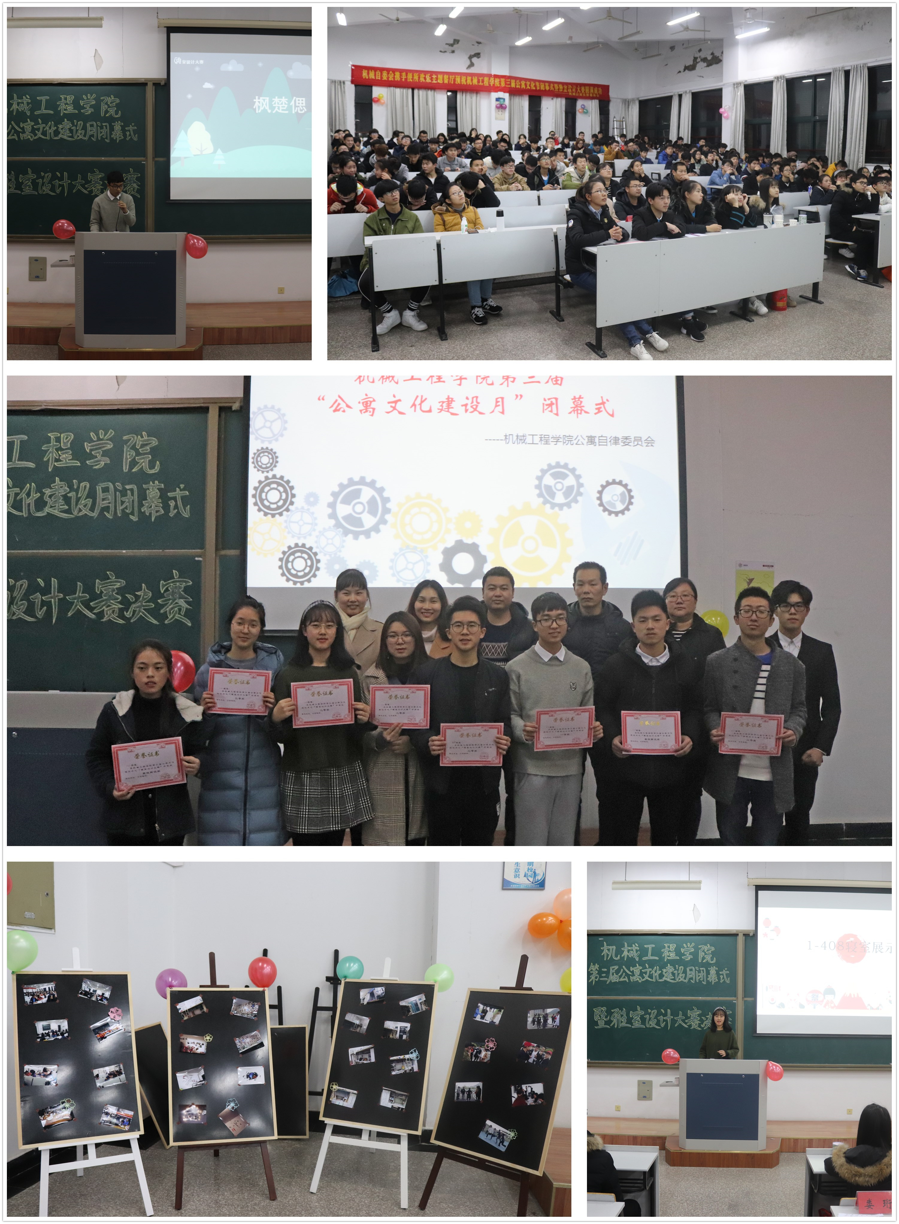 12月14日晚6:30,由机械工程公司公寓自律委员会主办的第三届公寓文化建设月暨雅室设计大赛决赛在2401教室举行。公司各年级辅导员、各班班主任及全体寝室长参加本次活动。