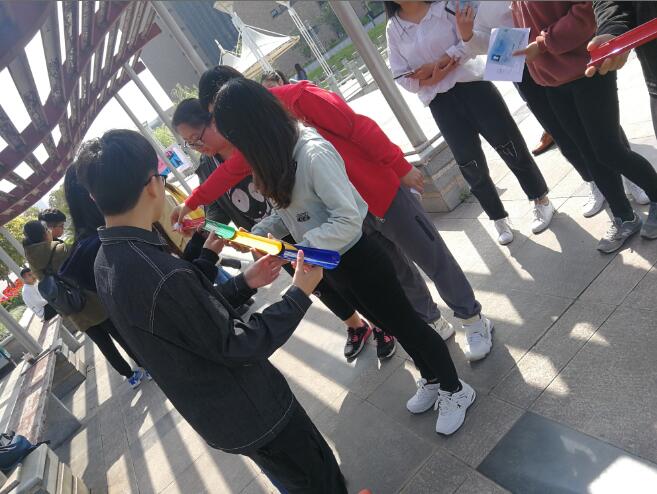 3月31日,机械工程公司举办了以“筑梦启航,幸福情旅”为主题的“夺宝奇兵”活动。经过初期宣传,全校共有100多个小组参赛。活动在上午9:40开始,同学们在湖心亭处领取积分表后,完成有关心理健康的小游戏:千里传球、刺激投篮、又快又稳以及恋爱心理知识竞答。游戏负责人结合同学们参与过程中的表现给出相应分数,而成绩优秀的同学则有机会获得藏宝图,争夺最后的神秘大奖。本次活动现场秩序良好,同学们踊跃参加,气氛活跃。