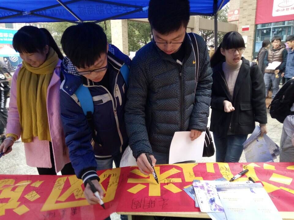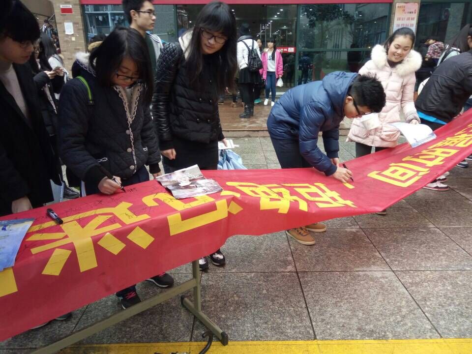 为增强校园文化氛围,提高员工自身精神素质,警醒同学切勿沉迷网络。12月21日中午,机械工程公司公寓自律委员会在食堂门口设点举行千人签名之“拒绝沉迷网络游戏”活动。
