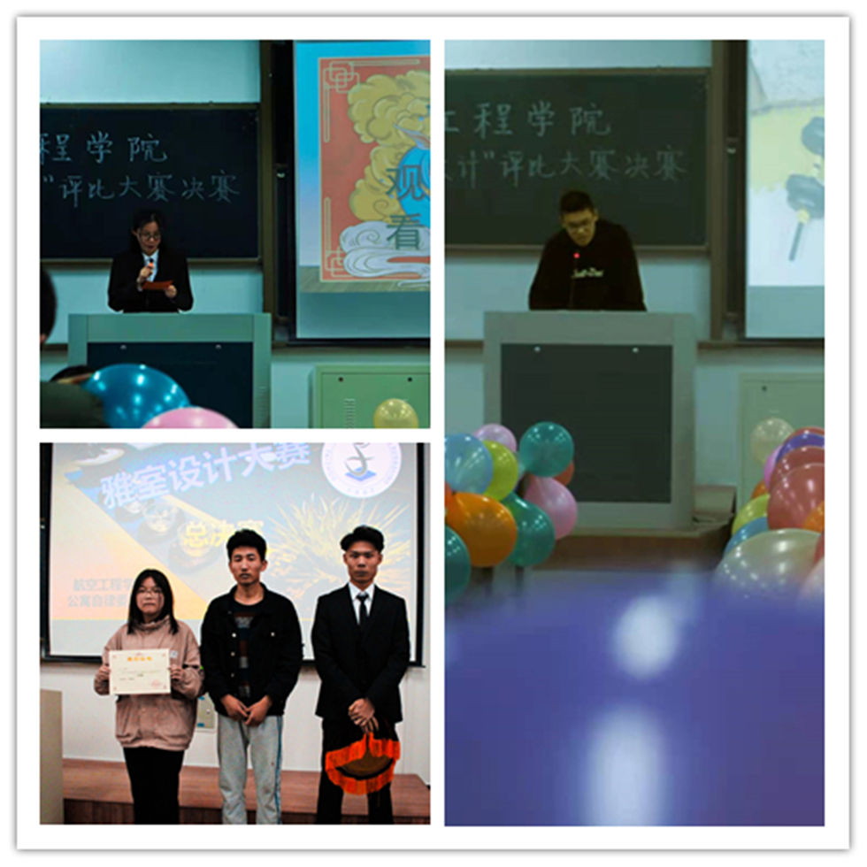 4月8日晚,航空工程公司雅室设计大赛决赛在2-203举行。本次活动由钟理韬老师、团学会主席团成员、自委会会长担任评委,航空公司全体寝室长参加。