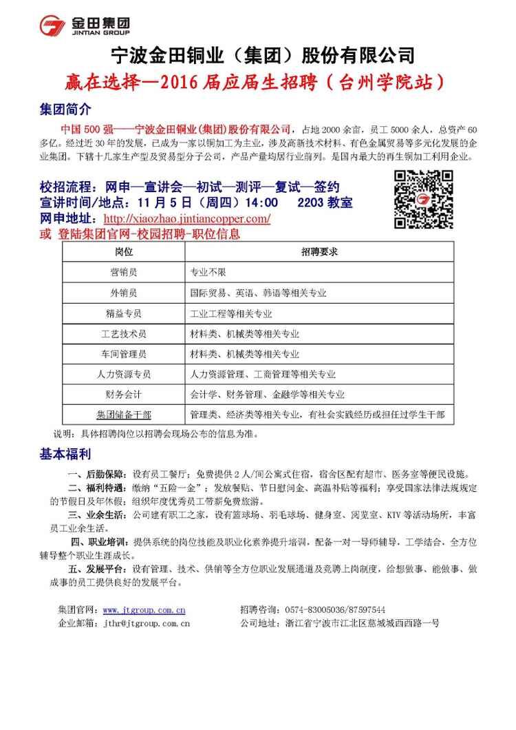 宁波金田股份与现公司招聘简章