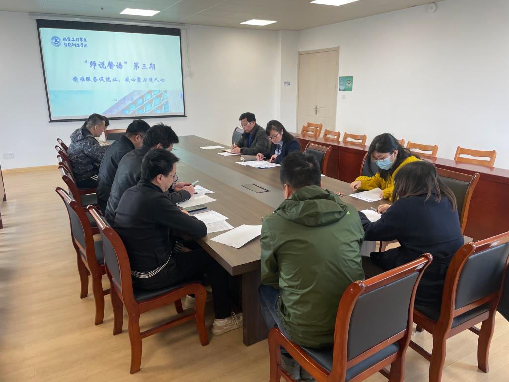 为帮助毕业季众多航空毕业生解决就业难题,缓减目前形势下日益加重的就业压力,航空工程公司于2022年3月25日下午开展“师说馨语”第三期活动,本期的主题是“精准服务促就业,凝心聚力暖人心”。公司党委书记郑建华出席,党委副书记梅娇主讲;航空工程公司毕业班班主任、辅导员参会。