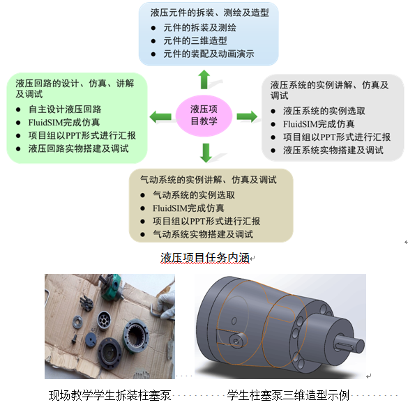 2)实施模块化液压项目教学,独创性地将课程整体分化为4个项目子任务,贯穿课程教学全过程,“逼迫”员工课内课外参与项目工作,培养员工团队合作意识和创新精神,提高员工分析问题、解决问题的能力。