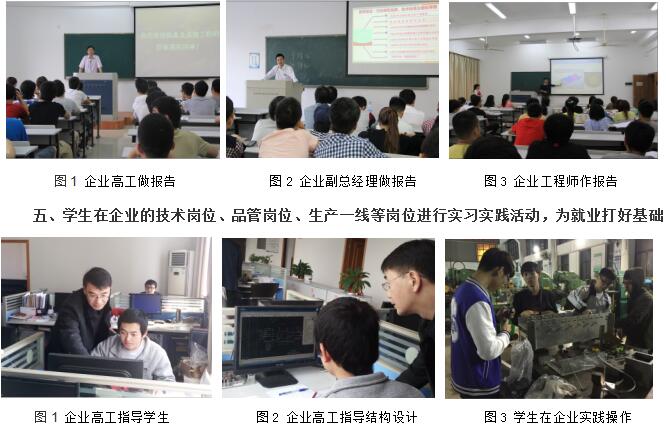 本专业多次邀请企业工程技术人员来校进行专题讲座。台州九泰金属制品有限公司陈真炎高工为员工作了题为《怎么走好技术专业发展之路》的专题讲座。陈真炎高工结合工作经历,生动介绍了自己的技术专业发展道路,以自身经验深入总结如何更快地适应并融入到新的工作当中。新界泵业股份有限公司副总经理张俊杰和总监张鹏应邀作了题为“泵制造业人才需求特征及就业策略思考”的讲座。信质电机有限公司任齐立工程师来校作题为《叠铆铁芯级进模及冲压介绍》的专题讲座,深入浅出地讲解了企业当中电机定转子级进模的排样、工作零部件尺寸的计算方法。