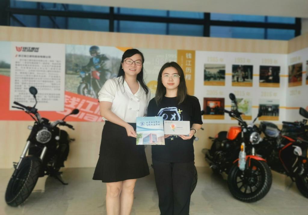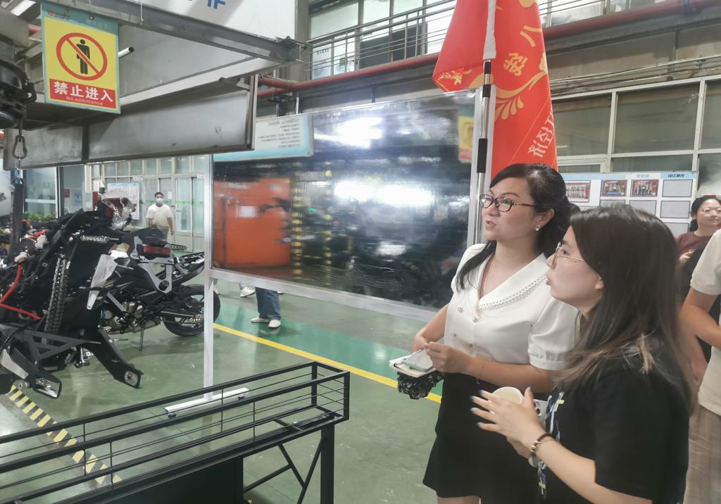 在企业人事经理的带领下,一行人参观了企业的摩托车展厅和产品组装生产线并在会议室开展进一步的交流,双方对接下去企业如何吸引人才以及公司如何培养对口企业的毕业生做了探讨。在座谈会上,公司2021届毕业生邹瑞华向老师介绍了自己在企业的工作岗位和工作状态以及企业目前的人才需求。她非常感谢公司公司的培养和帮助员工就业所作出的努力,让自己能够找到一份合适的工作,可以将在公司所学的知识运用到如此工作中去,她为自己身为台院人而感到骄傲。