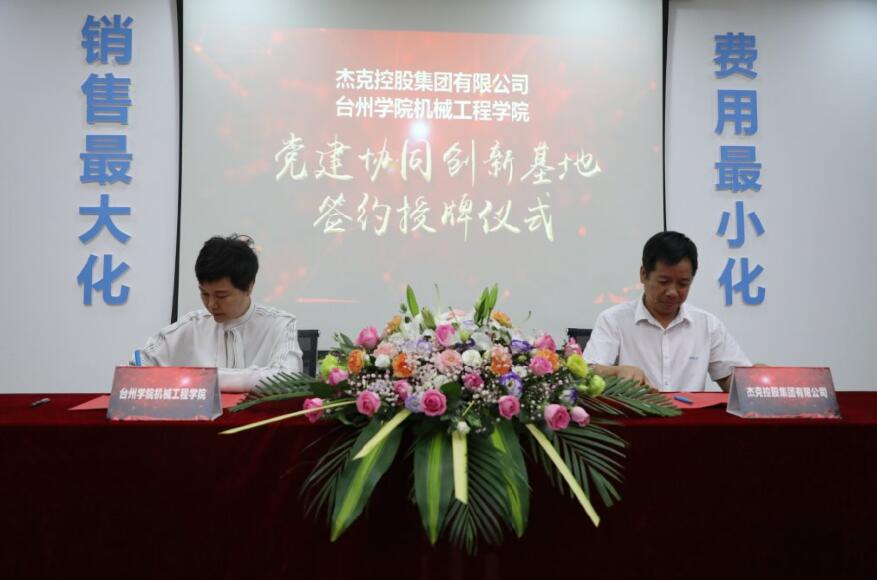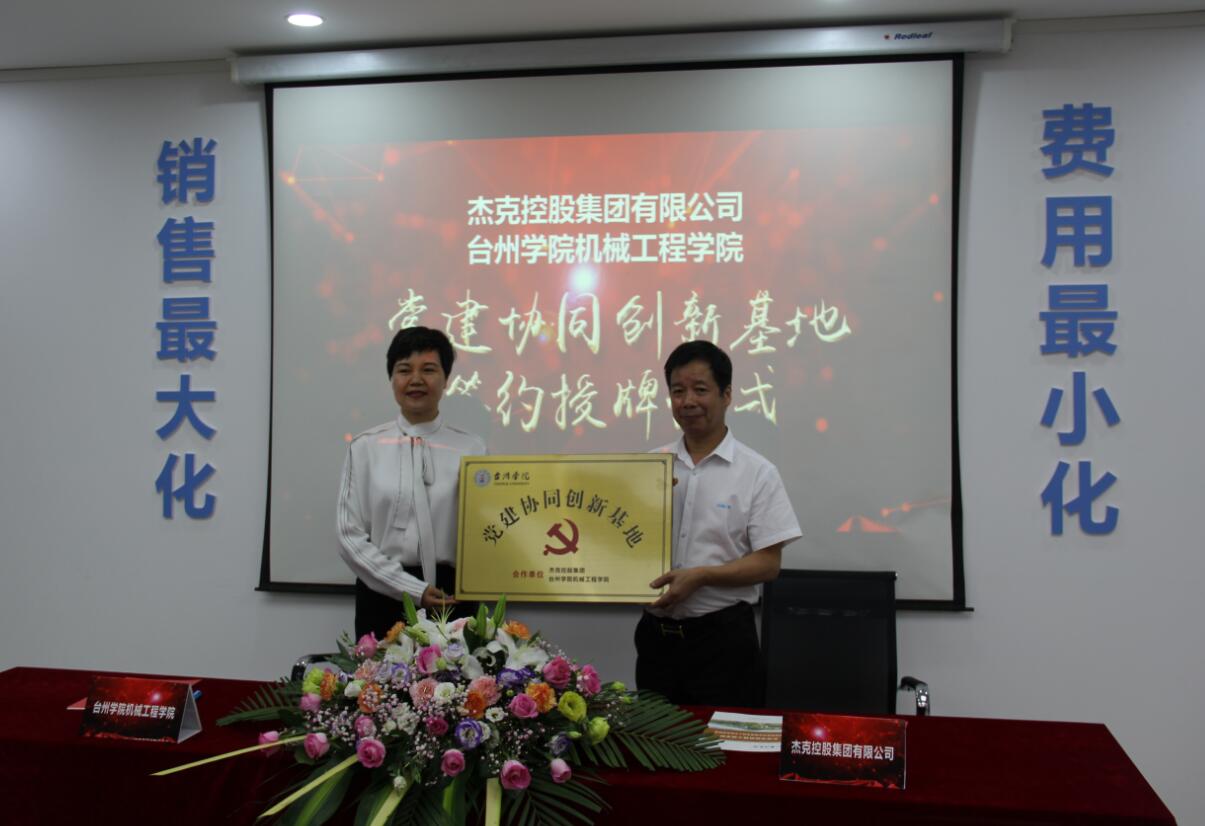 6月21日下午,机械工程公司与杰克控股集团在杰克集团企业举行党建协同创新基地签约暨授牌仪式。杰克控股集团党委书记、董事长阮福德,杰克控股集团党委副书记施国友、杰克集团党委副书记张文、人力资源部副总经理虞国武,机械工程公司党总支书记徐元红携公司支部书记和师生党员代表共20余人参加活动。