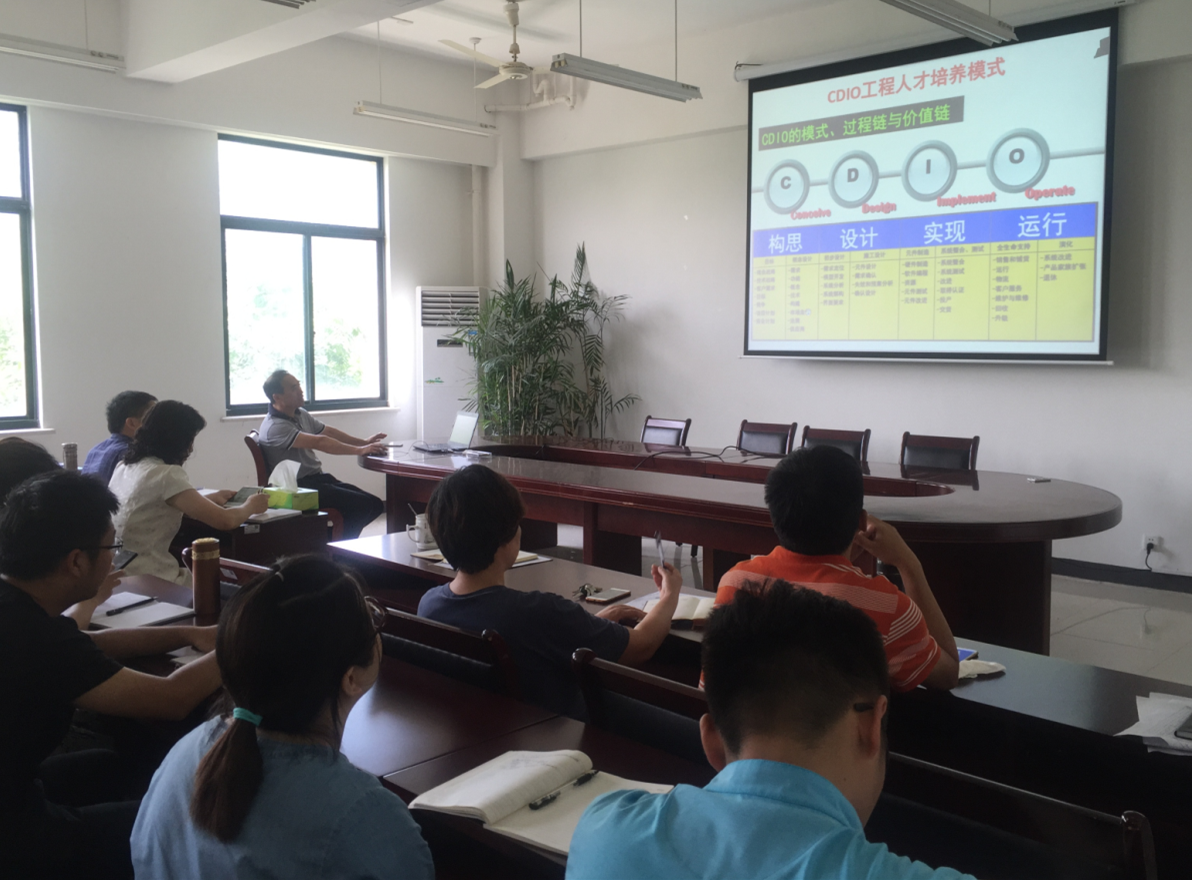 CDIO工程教育模式是近年国际倡导和推广的工程教育理念,是培养员工到企业对产品进行构思、设计、实施和运作能力的工程教育模式,OBE是基于学习结果的工程教育模式,两者既存在于形式上的融通,更存在精神上的融通。在会上,张永炬经理详细解读了CDIO—OBE”工程人才培养模式的精髓,并介绍了汕头大学将CDIO和OBE创新性的融通结合,取得了良好的教学效果。范剑老师与全院教工分享了应用型课程开发理念、方法和具体的实施步骤,并就此前参加省第一届应用型团队的内容和学习体会与大家进行了互动交流。