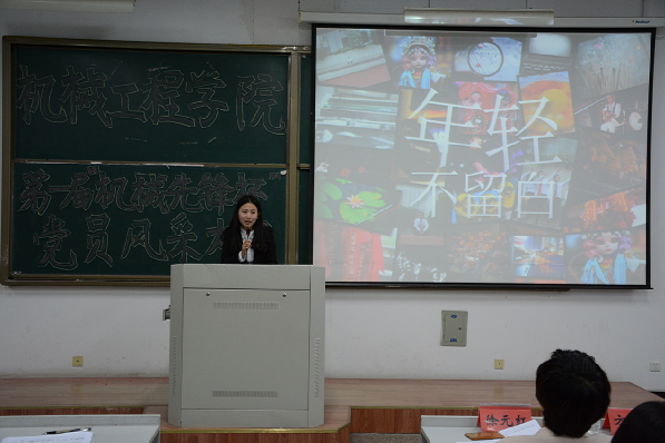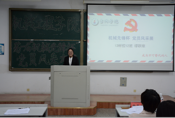 为扎实推进“两学一做”学习教育,深入贯彻党的十八届六中全会精神,树立当代老员工刻苦学习、奋发成才的典范,在实现中国梦的伟大征程中贡献青春力量。机械工程公司员工党支部于12月8日晚举办首届“机械先锋杯”党员风采大赛。公司党总支副书记徐元红老师、各党支部书记、辅导员出席并担任评委,全体员工党员、主要员工干部以及第八期党校入党积极分子参加。