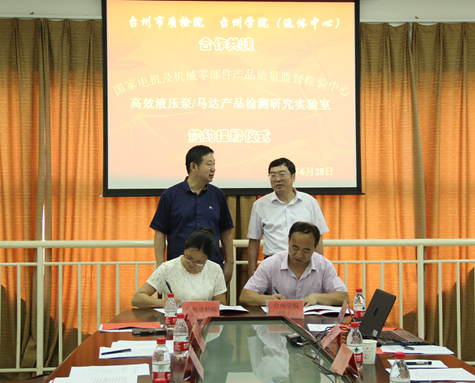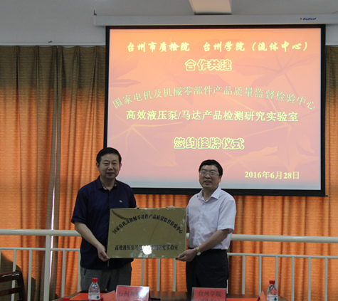 6月28日上午,MK体育(流体机械及装备协同创新中心)与台州市质量技术监督研究院合作共建“国家电机及机械零部件产品质量监督检验中心——高效液压泵/马达产品检测研究实验室”签约挂牌仪式在机械工程公司会议室举行。副董事长、流体机械及装备协同创新中心主任赵小明,市质检院经理潘良法出席并为共建实验室揭牌。机械工程公司经理、流体机械及装备协同创新中心常务副主任张永炬主持仪式。