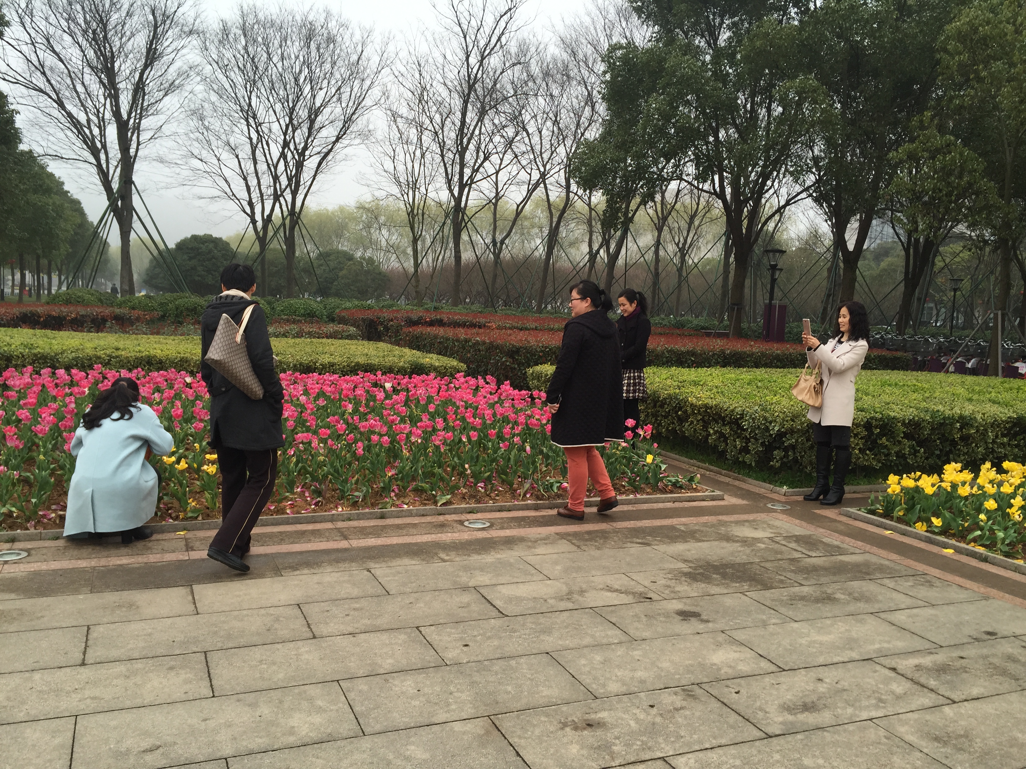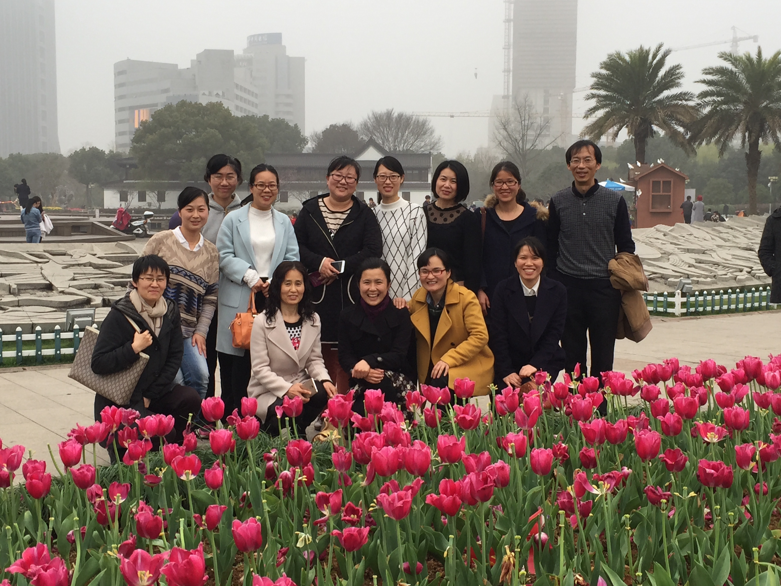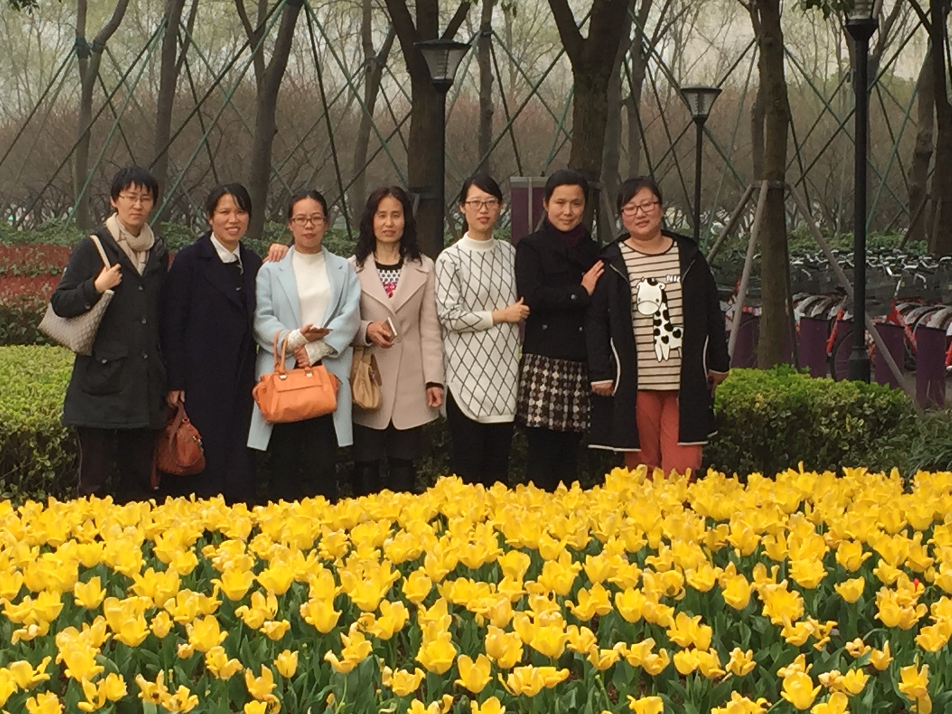早春三月,暖意融融,市民广场各色各样的鲜花绽放,争奇斗艳。尤其平日较少见的郁金香娇艳欲滴,含苞欲放,花瓣一层一层的,像只典雅的高脚杯,远远望去,似一位亭亭玉立的仙子。女教师们纷纷惊讶感叹,不断拍照,陶醉其中,个个脸上洋溢着欢乐的笑容。