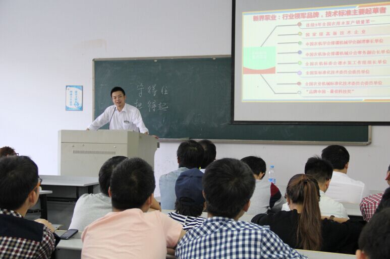 10月22日下午,新界泵业股份有限公司副总经理张俊杰和总监张鹏应邀机来到公司,作题为“泵制造业人才需求特征及就业策略思考”的讲座。机械公司党总支书记张伟主持讲座,毕业班同学以及骨干训练营成员聆听了讲座。