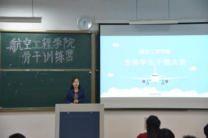 12月5日晚,航空工程公司员工干部大会暨骨干训练营开营仪式在椒江校区2-205教室召开。出席仪式的有公司党总支委员董立达以及各年级辅导员。潘林老师带领员工干部学习了《员工会、研究生会干部自律公约》,并就骨干训练营的活动安排、人员选拔等进行了介绍。据悉,骨干训练营包含“博智”、“提能”、“广行”及“至善”四大工程,包含理论学习、能力锻炼、实践交流和素质拓展等版块,以学年为培训周期,参训学员考核合格颁发结业证书。