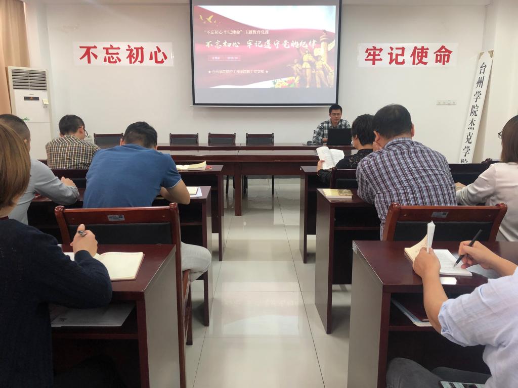 之后,教工党支部书记张勇超和员工党支部书记刘湘分别以心得体会形式给党员们上了题为《不忘初心、牢记遵守党的纪律》和《坚定理想信念,加强党性修养》两节党课。