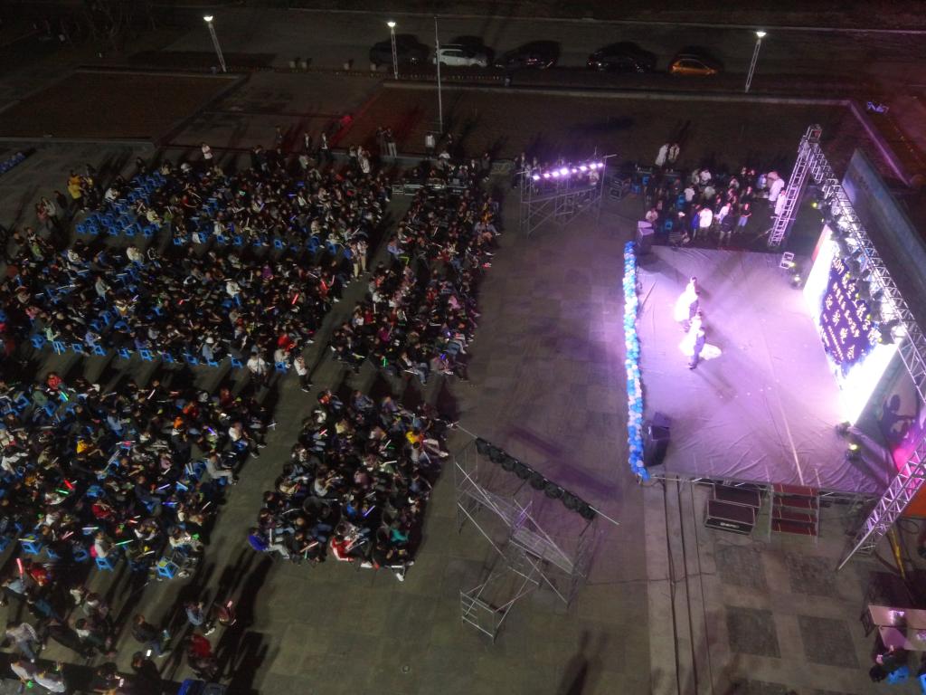 青椒壹壹叁玖乐队激情澎湃的开场表演,点燃全场热情。校团委文艺部带来的《Call me maybe》歌舞率先亮相,惊艳全场,19机械12班倾情演绎小品《一念天堂》,诙谐幽默的表演让观众捧腹不已,连连喝彩,把《告白气球》融入《画》里,唯美的画面,展现了18届十佳歌手的独特魅力。军训、运动会、生日、考研,航空自委会带来的情景剧《感动四年》贯穿台院生活的点滴,笑点密集,将晚会气氛推至高潮。适逢新中国成立七十周年,党支部及入党积极分子代表的红歌串烧唱出对祖国未来的发展的美好祝福,点燃现场同学的爱国主义情怀,最后晚会在舞蹈《For us》中圆满落幕。值得一提的是公司首次使用无人机在青年广场上空对晚会进行全程拍摄,以专业技能为核心,构建特色校园文化活动。