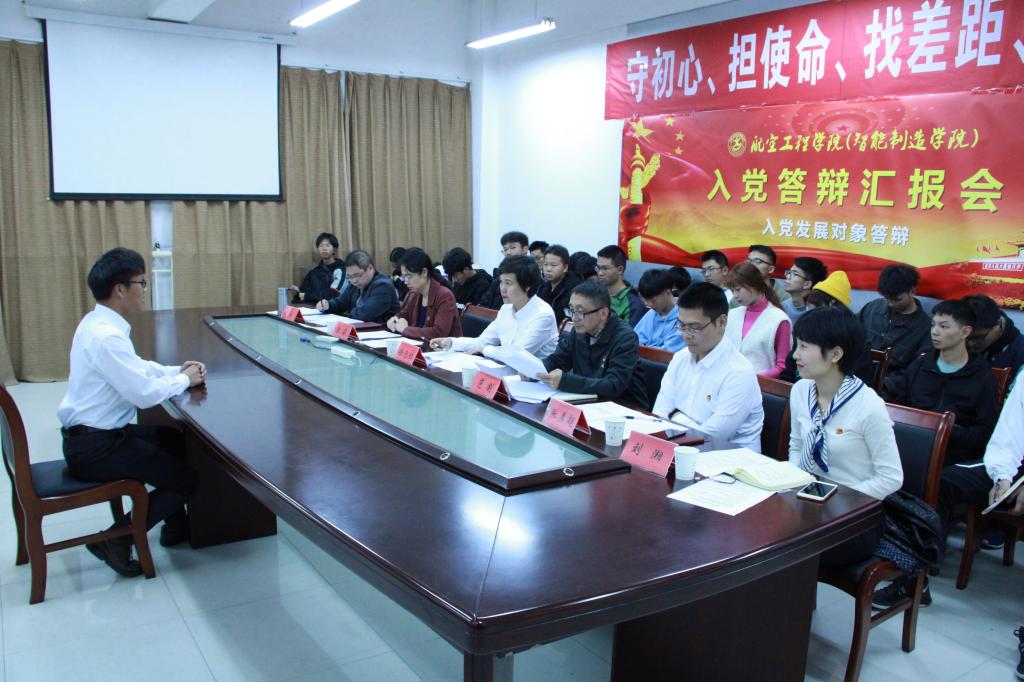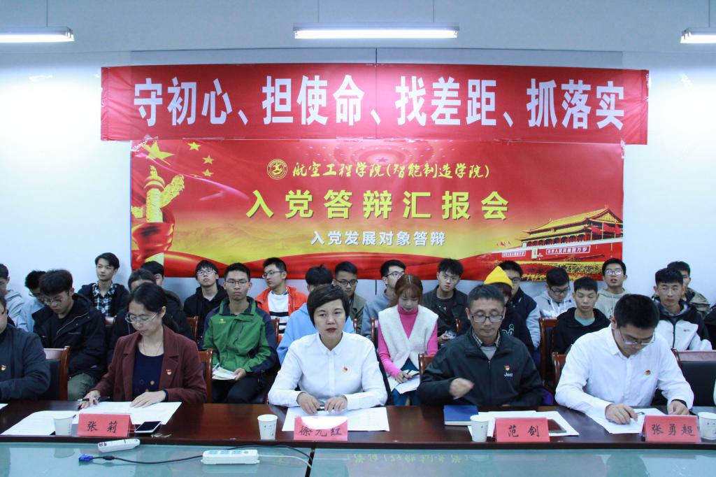 为保证新党员质量,加强和改进发展老员工党员工作,航空工程公司党总支决定在发展老员工党员工作中推行入党答辩制度。11月20日晚,航空工程公司在B220会议室举行了入党发展对象答辩会,公司党总支书记徐元红、副经理张莉、副经理范剑、教工党支部书记张勇超、员工党支部书记刘湘、党员教师方淳、员工党员和入党积极分子代表、班级代表参加了本次答辩会,答辩会由公司党总支书记徐元红主持。