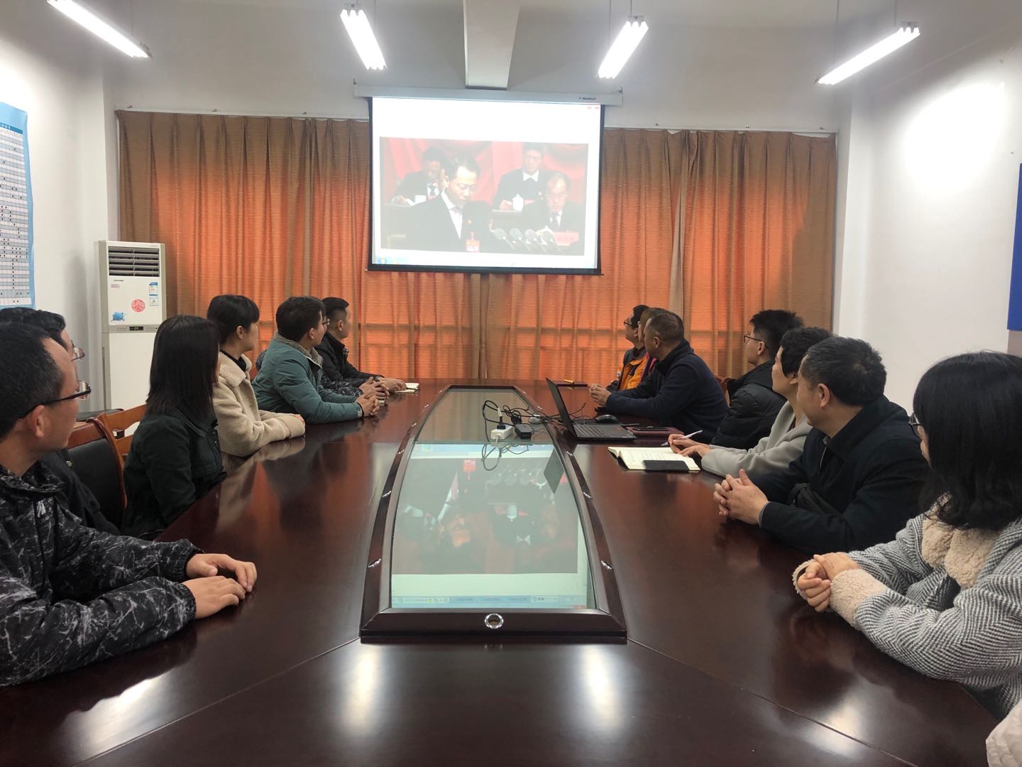 1月6日上午10:00,中国共产党台州市第五届代表大会第四次会议在椒江剧院召开。航空公司党总支组织教职工在B220会议室进行集中收看,大家认真聆听了市委书记李跃旗同志的报告,关注大会盛况。
