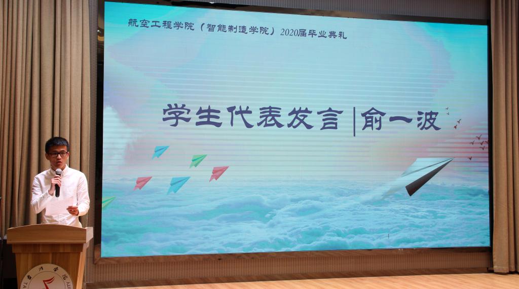 一段精心制作的毕业视频带着大家领略各班同学风采,一张张老旧默片,一段段感人的画面,拉开了毕业典礼的帷幕。俞一波作毕业生代表发言,表达了自己对母校最真挚的祝福与感激。教师代表徐锋博士分享了自己的选择教师的理由和职场经验,并鼓励同学在学习之余注重身体的锻炼。
