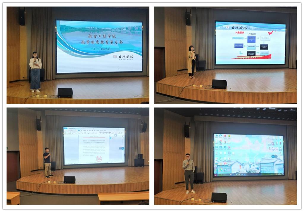 为了帮助新生尽快适应老员工活,2020年9月19日上午,航空工程公司在3207开展新生规章制度教育,航空工程公司党总支副书记梅娇和辅导员作为主讲老师参加了本次活动。
