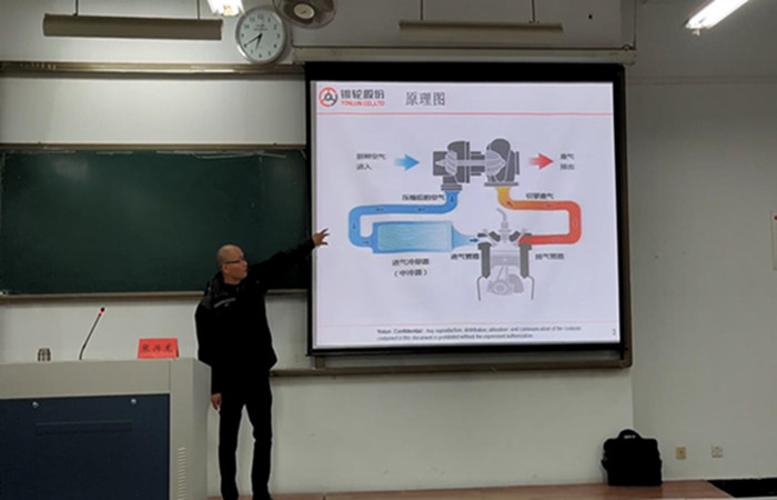张兴龙总工做“空空中冷器开发”主题报告,结合企业实际案例,主要介绍了空空中冷器工作原理、整车上的安装、开发工具、试验的设备和条件、项目具体的开发过程等。他在报告的过程中还特别结合自己几十年的设计经历对机械专业员工的在校学习提出了建议。最后的互动环节,他主要就员工如何成为一名优秀的工程师、企业对刚入职员工的要求等问题进行了回答。整场活动持续将近一个半小时,在员工中激起了强烈反响,同学们表示更加明确了自己的专业发展方向。