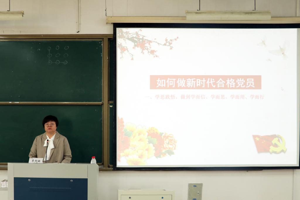 党课开始,李钧敏强调在新时代,广大党员要拥护以习近平同志为核心的党中央的领导,学习并贯彻习近平新时代中国特色社会主义思想。并向同学们提出两点要求:一是学思践悟,学习理论知识,丰富个人思想,做到学而信、学而思;二是知行合一,以理论滋养初心,用行动引领使命,做到学而用、学而行。随后,李钧敏具体阐述了“两学一做”“不忘初心、牢记使命”“党史学习教育”等学习教育活动的内涵,要求同学们将理论与实践相结合起来做事,用组织的纪律规矩来约束自我,做到严于律己、品行端正,处处以身作则。最后,她借习近平总书记提出的“青春由磨砺而出彩,人生因奋斗而升华”鼓舞同学们不忘初心,牢记使命,认真学习,积极生活,毕业后报效祖国、服务社会。