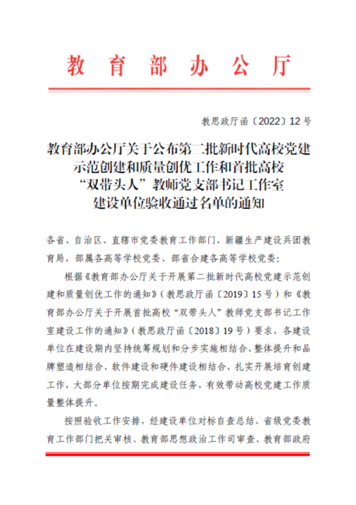 近日,教育部办公厅公布了第二批新时代高公司党建示范创建和质量创优工作建设单位验收通过名单,航空工程公司教师第一党支部顺利通过“全国党建工作样板支部”建设单位验收。
