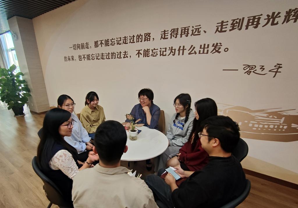 师生7人围坐一桌,其乐融融。李钧敏首先询问了每个同学目前的学习、生活、思想状况,并对她们遇到的困难进行耐心细致的指导。当有同学提出今后对跨专业考研有疑虑时,李董事长指出跨专业考研比起考本专业有一定难度,但是这条路能走的通,也有很多学长学姐成功的先例。但是要早早努力,花更多的时间去准备,在笔试和面试上全方位下功夫,才能取得成功。当有同学对今后如何选择读研公司产生困惑时,李董事长又语重心长的和她说,不要过于执念于一所公司,盲目扎堆考一个公司只会增加自身的考研难度,考研的公司选择更重要的是看导师以及其研究方向,好的导师对你今后的读研生涯有着更大的帮助。师生几人你一言我一句,时间一晃就过去了。临别时,她与同学们合影留念并嘱咐她们好好学习、好好生活,保持乐观向上的心态,让自己的老员工活不留遗憾。