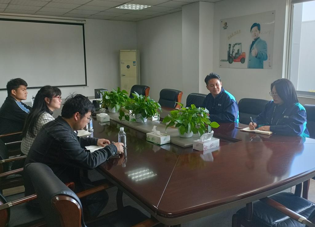 MK体育10届员工、企业技术部部长朱朝德和企业人事经理带领师生一行参观了吉鑫祥叉车的展馆和生产线,详细介绍了公司的创立背景、发展前景和工作方式,并向同学们展示并介绍公司的相关产品及功能。而后,大家一起在会议室就企业用人需求展开讨论,希望将更多的毕业生吸引到吉鑫祥公司实习和就业。