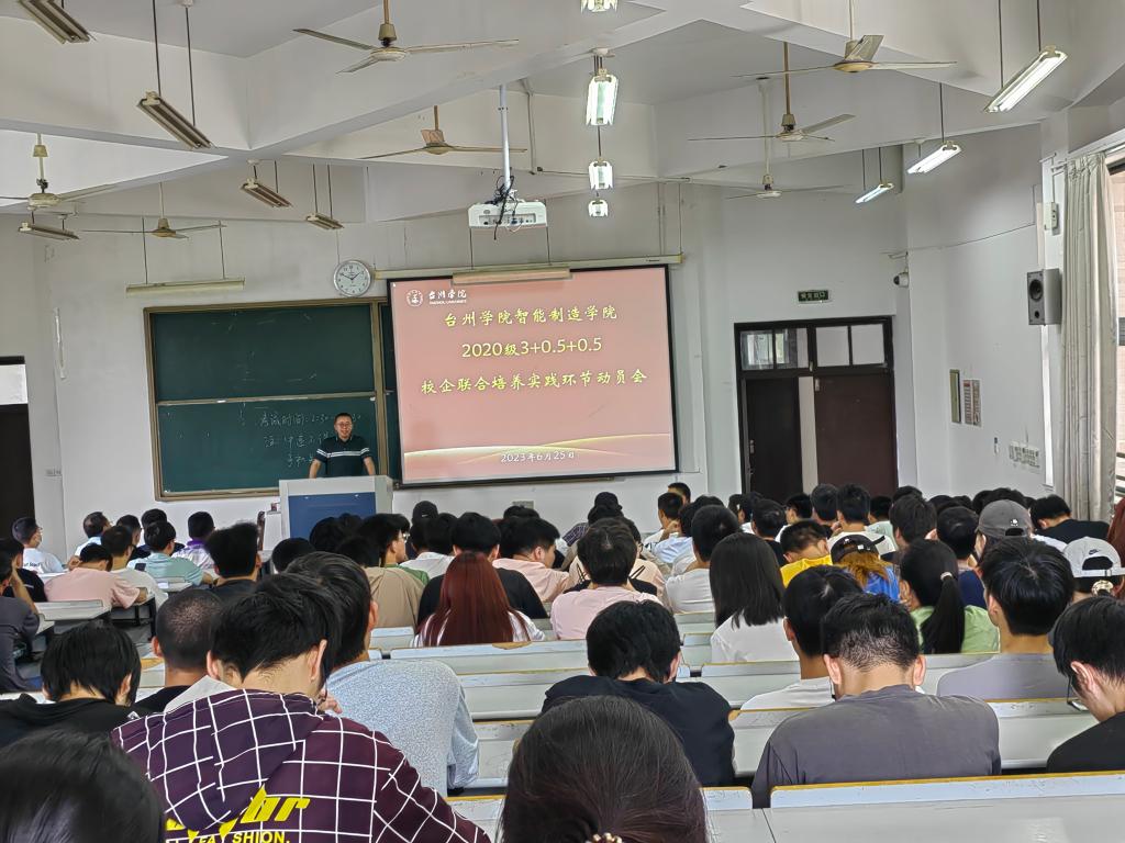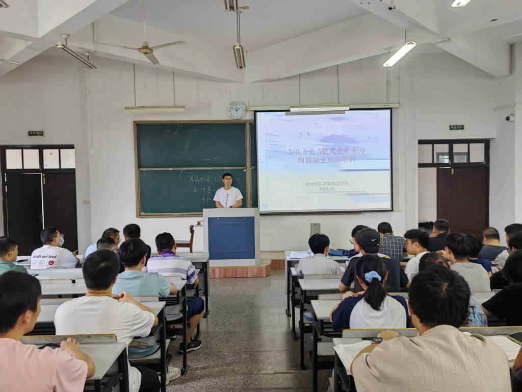 6月25日中午12:30在椒江校区2-205教室举行2020级3+0.5+0.5校企联合培养实践环节动员会。2020级机械、机电、智能制造、无人机专业200多员工,公司领导、学工、班主任、专业核心团队的老师参加了动员会。会上,倪君辉副经理强调了3+0.5+0.5校企联合培养实践环节的重要性并介绍了2020级“3+0.5+0.5校企联合培养”的安排计划;张勇超老师给同学们进行了3+0.5+0.5模式企业实习岗前安全知识培训。