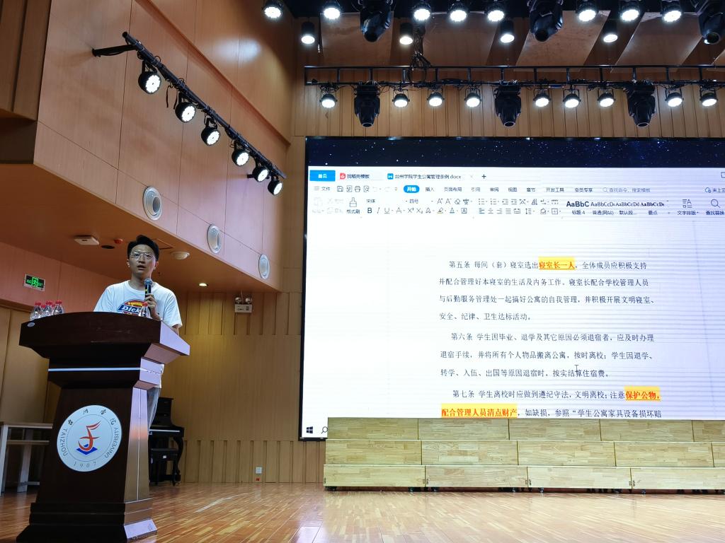 会议中,各位老师结合自己负责的分管工作内容,对相关的规章制度进行了详细的讲解。主要内容包括寝室卫生、综合考评、心理健康、助学帮困、教学管理、安全教育等。此外,老师们还特别强调了奖学金评定、入党流程等细节,帮助新生们更全面地了解公司规章制度,规范自己的行为,养成良好的纪律习惯。会上,各位老师也对新同学的到来表示真挚欢迎,并寄予了真诚的祝愿和美好的期待。