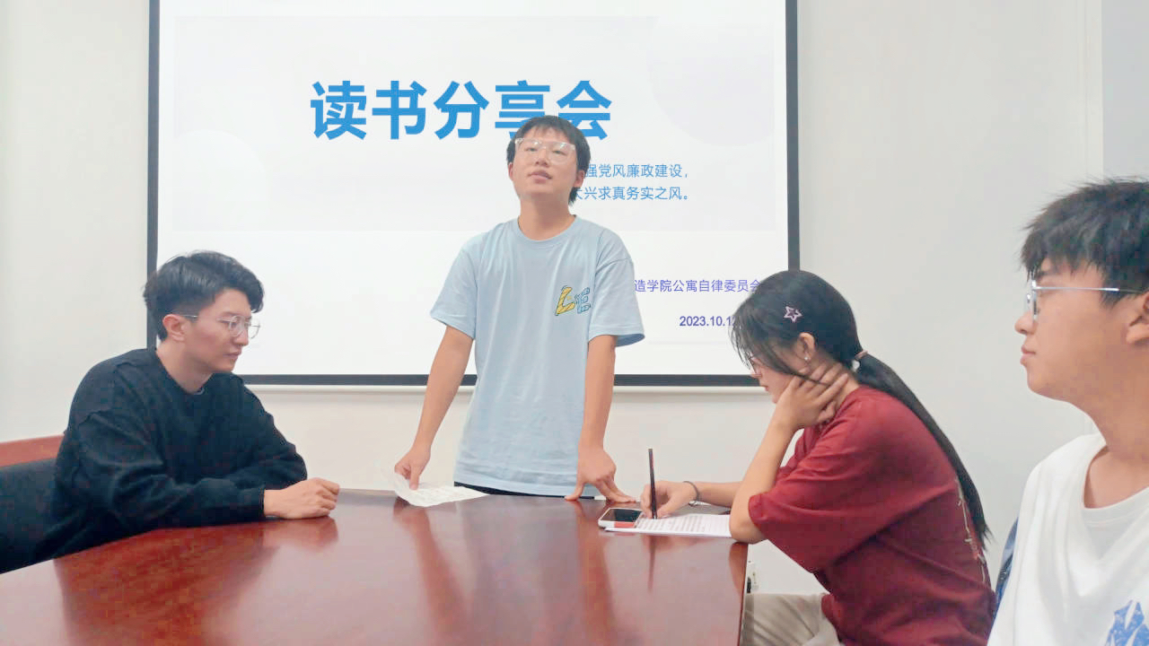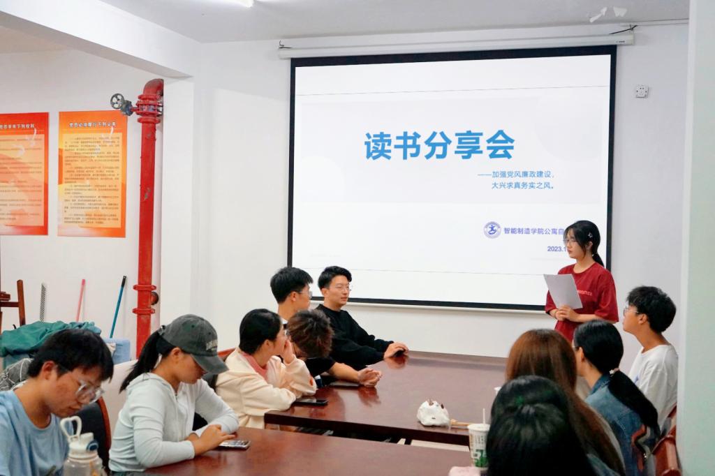 为深入学习习近平总书记关于党风廉政建设和反腐败斗争的论述,进一步弘扬廉洁文化、打造清廉校园,10月12日晚,由MK体育纪委主办,公寓自律委员会承办的读书分享会在4号公寓617党员活动中心举行。辅导员张益伟出席活动,员工干部及员工代表参加。
