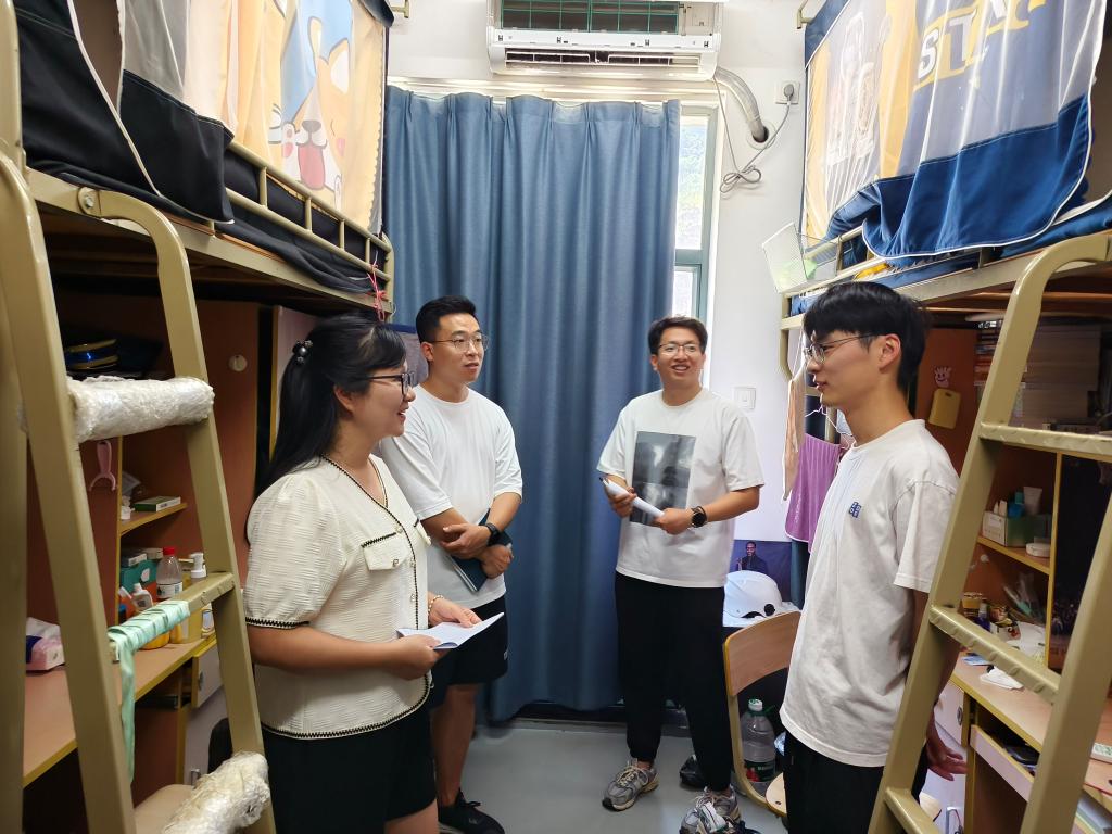 为加强暑期留校员工安全管理,深入了解留校员工的生活、学习及思想动态,7月18日,公司党委副书记梅娇带领辅导员深入员工宿舍、实验室、考研教室,进行安全检查与关怀慰问。