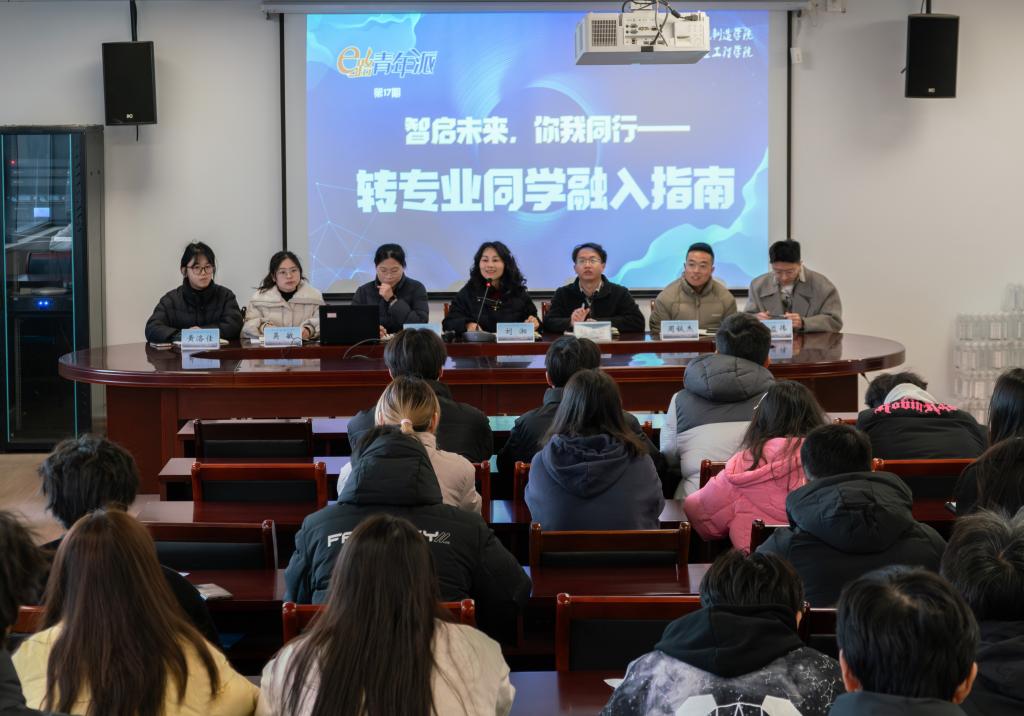 新学期到来,MK体育迎来一批转专业同学,为欢迎新同学加入公司,助力其加深对公司和专业了解,公司于3月6日下午在航空大楼s510会议室举办第十七期“e路青年派”活动。此次活动主题为“智启未来,你我同行——转专业同学融入指南”,邀请公司副经理倪君辉为主讲嘉宾,活动由学工办主任刘湘老师担任主持,全体辅导员老师出席,转专业同学50余人参加。