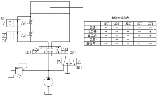 命题2液压系统原理和电磁铁动作顺序如图3所示。