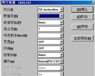 点击菜单“PLC”的子菜单“串行口设置(D8120)[e]”,弹出下列对话框: