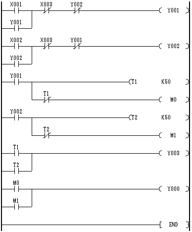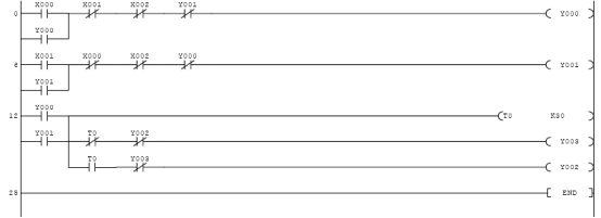 闭合X000、闭合X001、断开X002 Y000应该不动作