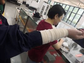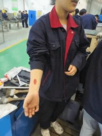 受伤员工手臂救护现场
