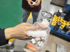 演练模拟实训中心普通铣床实习现场发生机械伤害事故,一名实训员工在使用铣床时,被铣床铁屑挂伤手臂;另一名员工,在实习过程中,手臂被铁屑刮伤,鲜血直流。发生机械伤害时发现人员能第一时间按下急停按钮关掉设备,并大声呼救。在旁边的实习指导教师发现伤情向实训安全组长报告,并立即启动机械伤害事故应急处置。