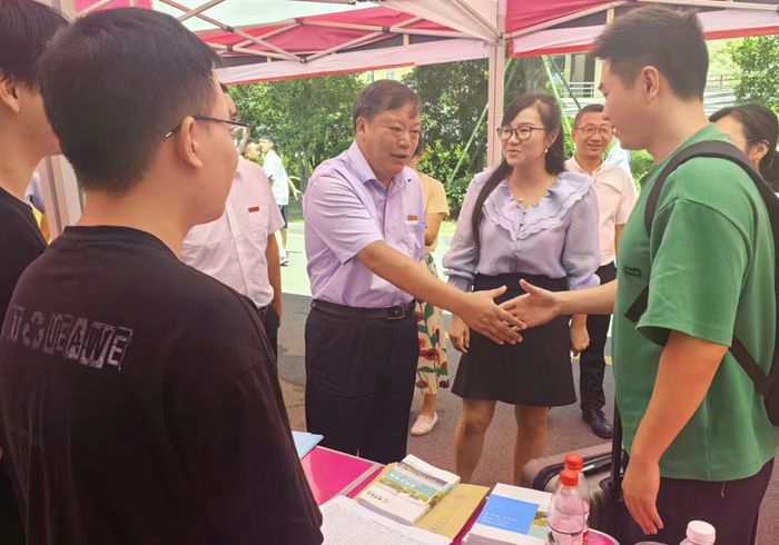 党委副书记金先龙与相关职能部门负责人来到迎新点,给予参加迎新工作的教师及志愿者以亲切慰问,并与前来报到的研究生进行深入交谈。公司党政领导班子成员也相继来到迎新点,对研究生迎新工作给予指导并关怀参与迎新工作的师生。