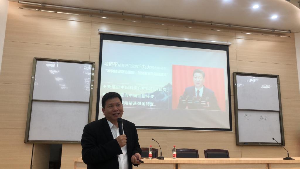 首先,陈华贵从我国制造业大而不强的现状切入课程的主题,要从制造大国走向制造强国,就要进行制造强国战略——中国制造2025。课上,他指出中国面对当前的国际形势是挑战也是机遇,要抓住智能制造的“三个主要”,多层次,多维度推进自动化,智能化制造,打造智慧工厂,以此为推进制造强国战略的制高点、突破口和主攻方向。课程中,他积极与员工互动,认为要用五千年智慧来助推中国智造,中国文化的悠久历史对于文化自信有重要意义,而文化自信是一个国家、一个民族发展中更基本、更深沉、更持久的力量。陈华贵在谈及当今社会的现状,用幽默诙谐的语言和生动的案例分析来阐述中西方的文化差异。最后陈华贵讲到中国梦带来的一些思考,通过对信仰和精神对现实社会意义的影响,描绘出人与人、人与自然、人与社会的和谐发展,阐述传统文化中“人无德不立,国无德不兴”的思想,用中国古典文化孝道来达到最终的人生幸福。