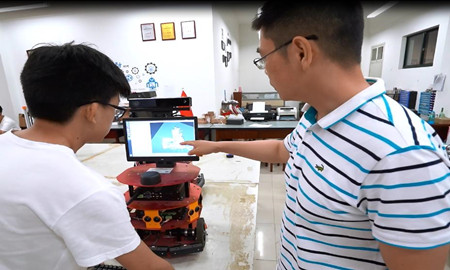 教师指导员工开展AGV小车开发